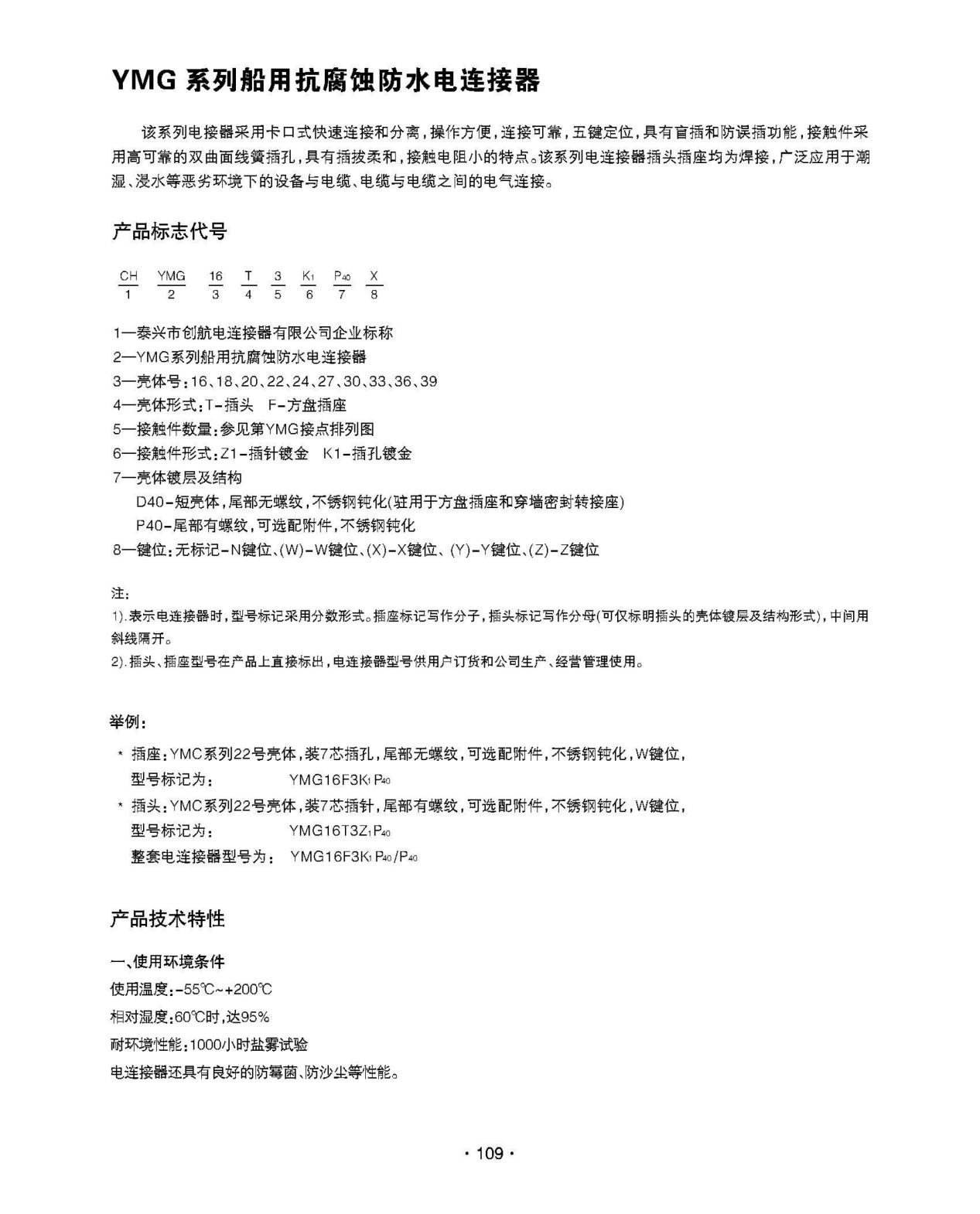 YMG系列船用抗腐蝕防水電連接器——密封防水,線簧式插孔,卡口快速連接