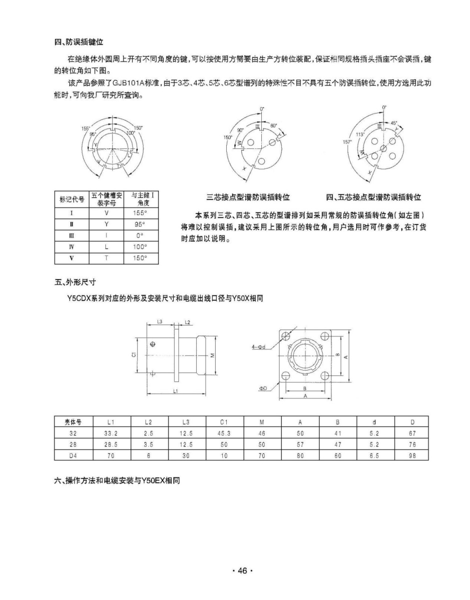 該系列電連接器符合GJB101A-1997標(biāo)準(zhǔn),是Y50X的擴(kuò)展產(chǎn)品,并且同一殼體號的電源系列的插頭插座外形及安裝尺寸可以互配。其連接方式采用卡口連接,具體快速連接和分離,體積小、重量輕、耐環(huán)境好等特點(diǎn),適用于大電流電源系列的連接。