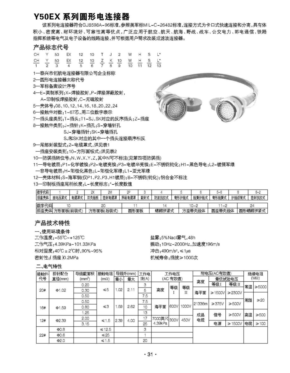 Y50EX系列圓形電連接器——英制型譜,卡口快速連接,與YL同芯數(shù)產(chǎn)品,完全互換