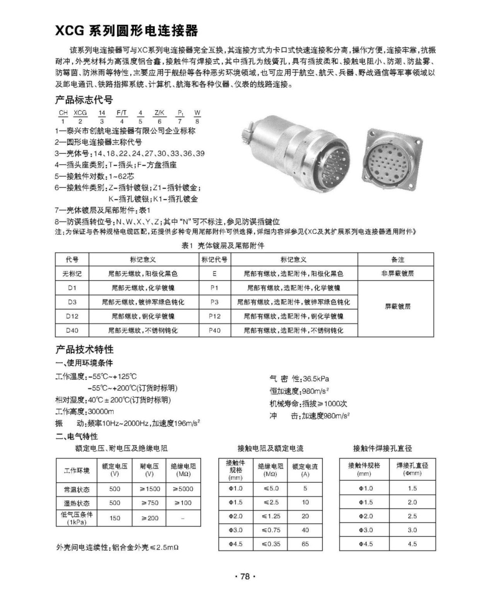 該系列電連接器可與XC系列電連接器完全互換,其連接方式為卡口式快速連接和分離,操作方便,連接牢靠,抗振耐沖,外殼材料為高強度鋁合鑫,接觸件有焊接式,其中插孔為線簧孔,具有插拔柔和、接觸電阻小、防潮、防鹽霧、防霉菌、防雨淋等特性,主要應用于艦船等各種惡劣環(huán)境領(lǐng)域,也可應用于航空、航天、兵器、野戰(zhàn)通信等軍事領(lǐng)域以及郵電通訊、鐵路指揮系統(tǒng)、計算機、航海和各種儀器、儀表的線路連接。